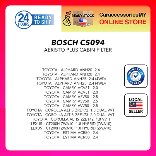 Bosch Carbon Cabin Filter C5094 Aeristo Plus Altis Innova Vios Estima Alphard Wish Camry Corolla Mark-X Land Cruiser