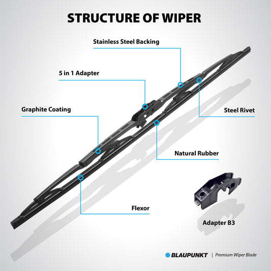17 inch blaupunkt ultra slim wiper 10 in 1 multi adapter 1 piece car accessories