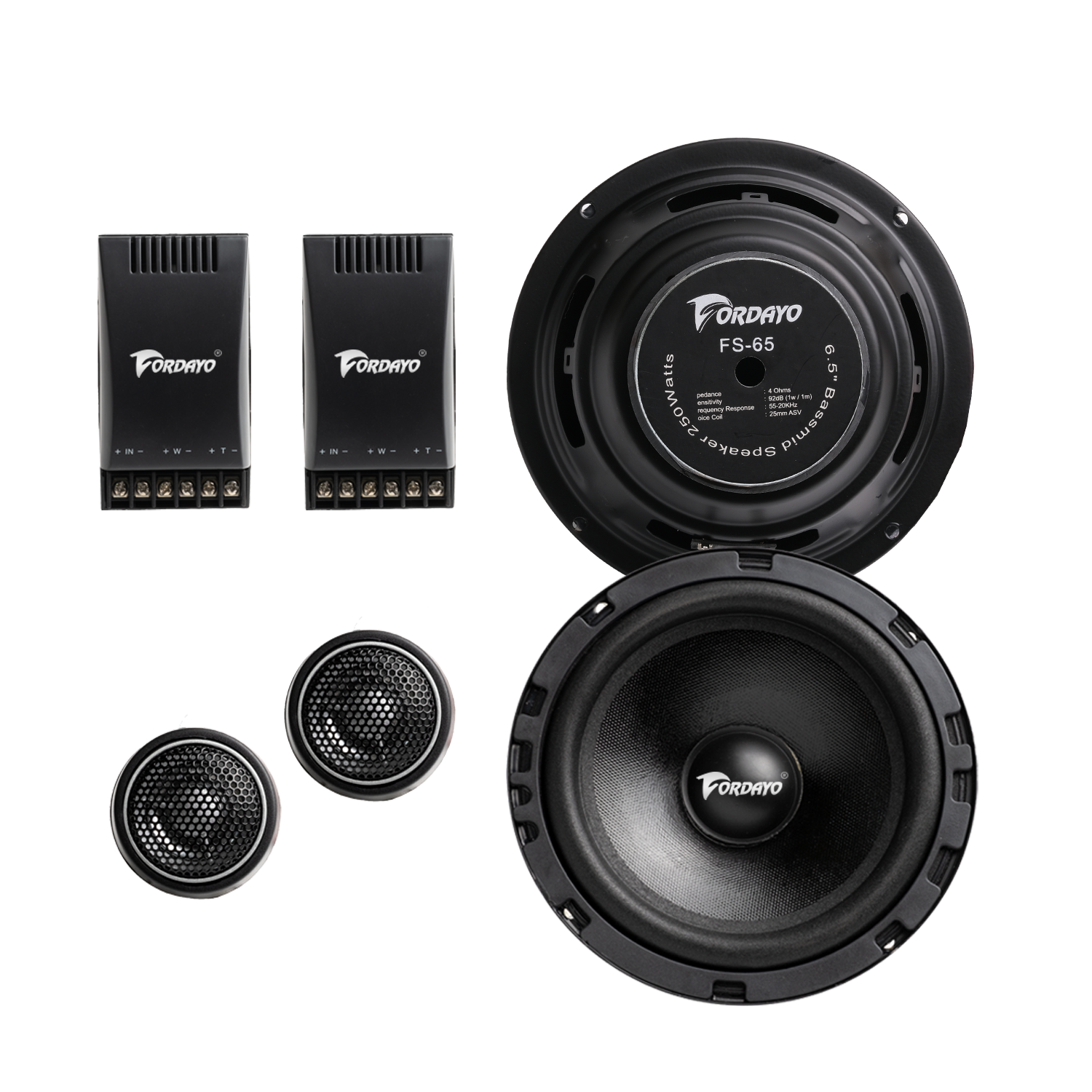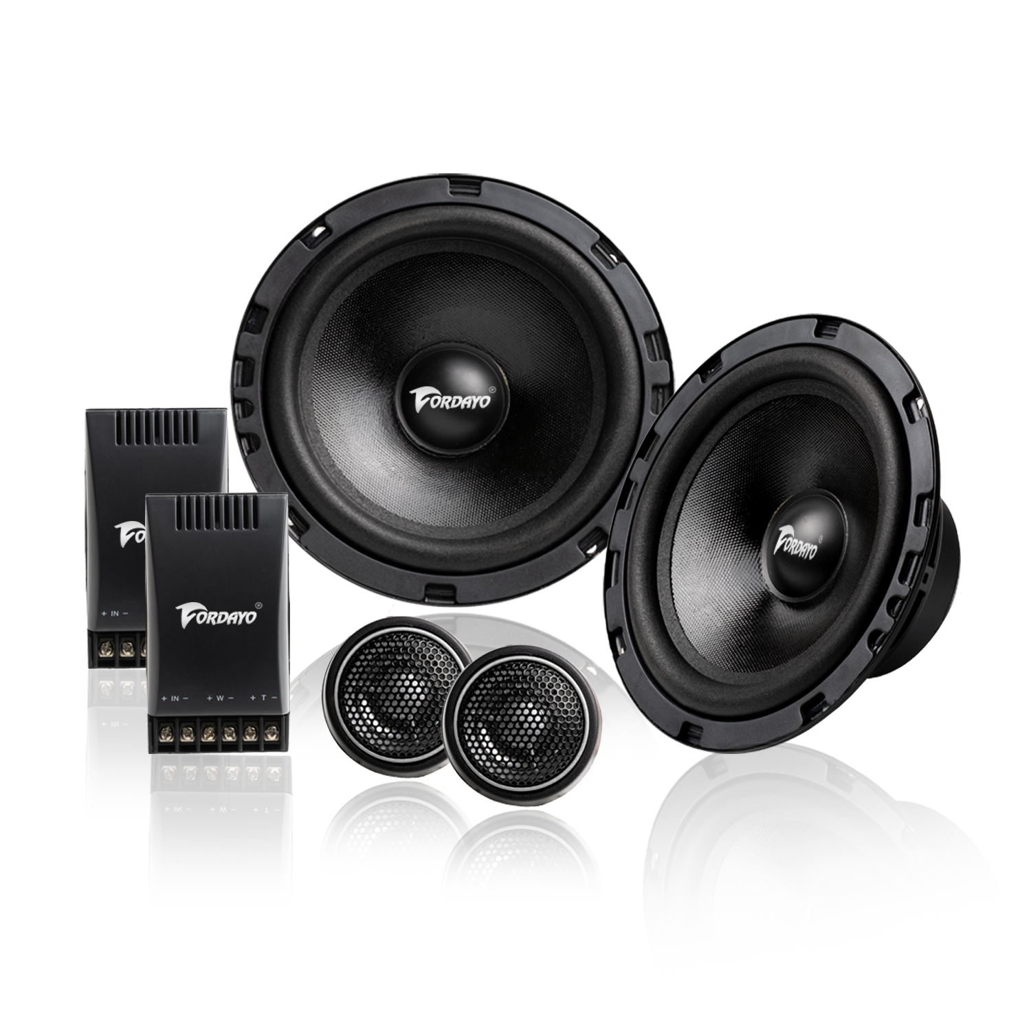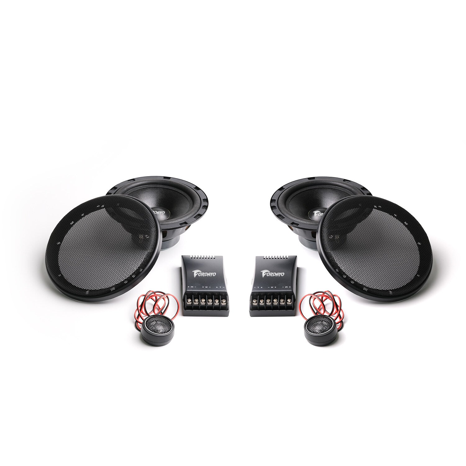 FORDAYO component speaker is a car audio speaker matched for optimal sound quality. Typically a pair of tweeters and mid-bass drivers are matched with a crossover to limit the frequency range each speaker must accurately reproduce. Component speaker drivers are physically separated so the tweeter, which is very directional, can be placed in an optimal position, usually on the dash facing the listener, while the larger mid-bass driver can be placed where there is room, often in the lower front of the car doors. Component speaker pairs are offered by all of the high-end audio manufacturers.