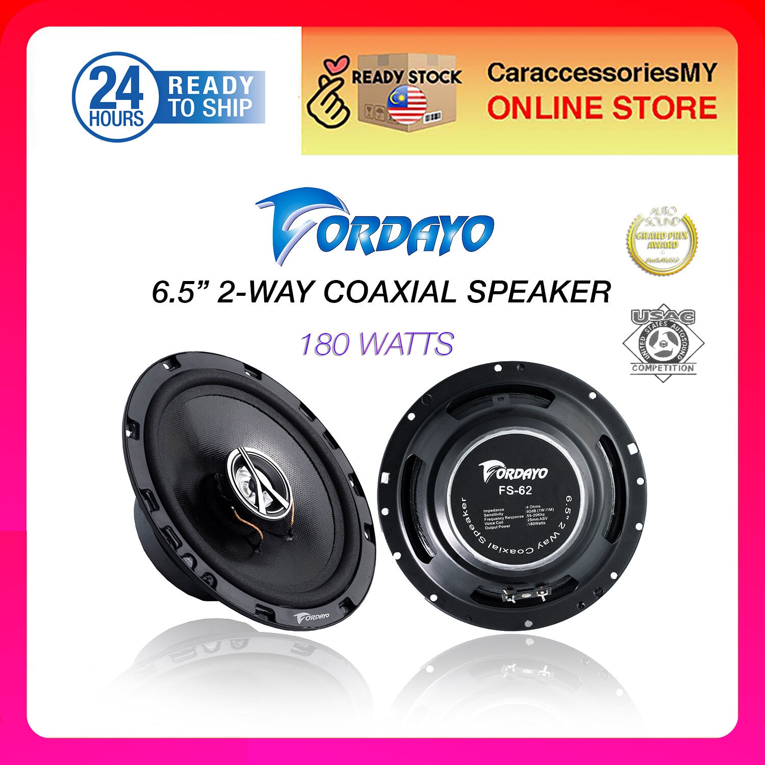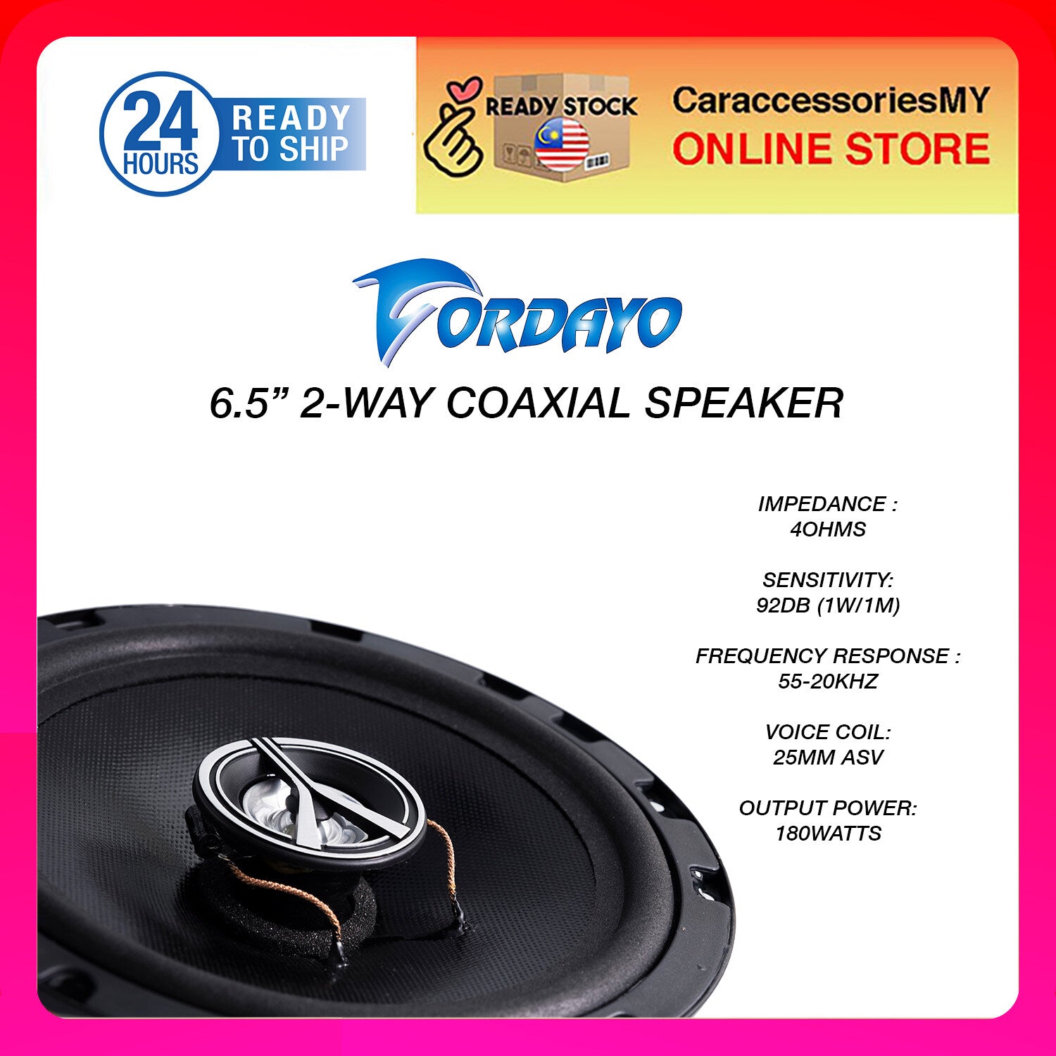 Fordayo 6.5 inch 2 way coaxial speaker car audio speakers speker kereta tweeter woofer bass 汽车喇叭音响 front & rear door universal