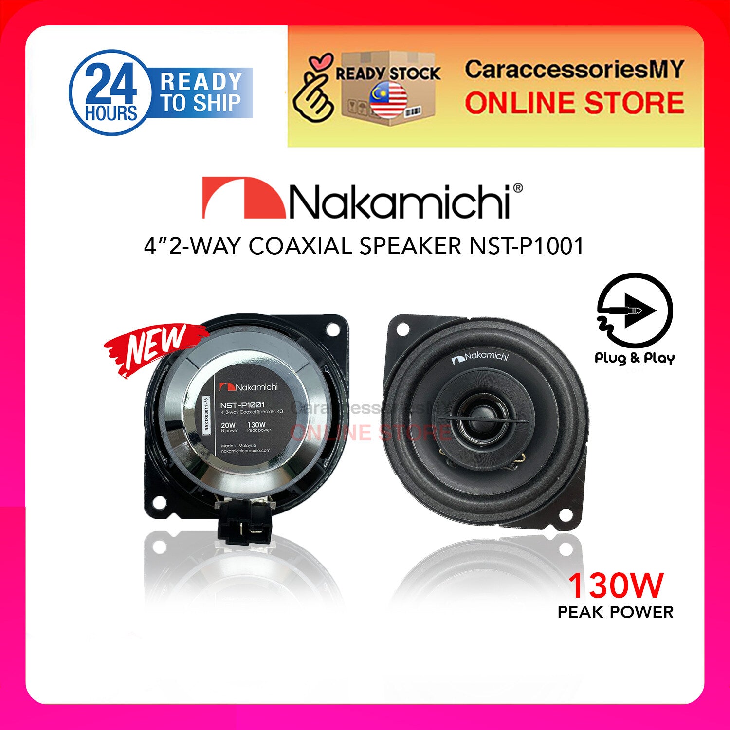 Nakamichi 4 inch 2-Way Coaxial Speaker | Plug and Play for Myvi Viva Axia Bezza | Speaker Kereta NST-P1001 car speaker