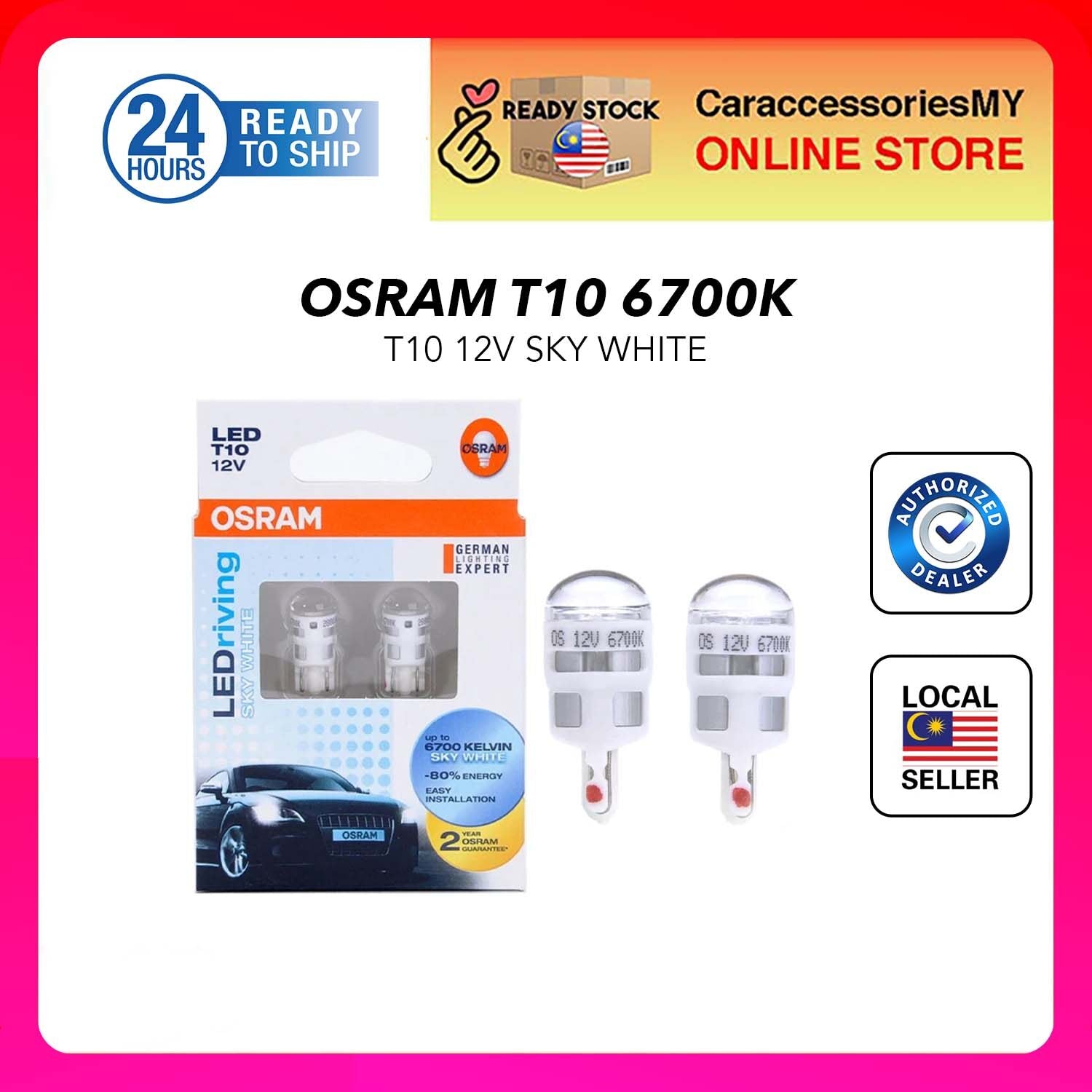 Osram LED T10 12V 2 PCS 6700K COOL Kelvin sky white car accessories light bulb lampu led kereta Myvi Axia Alza Viva Aruz Bezza Saga BLM/FLX Persona Exora Waja