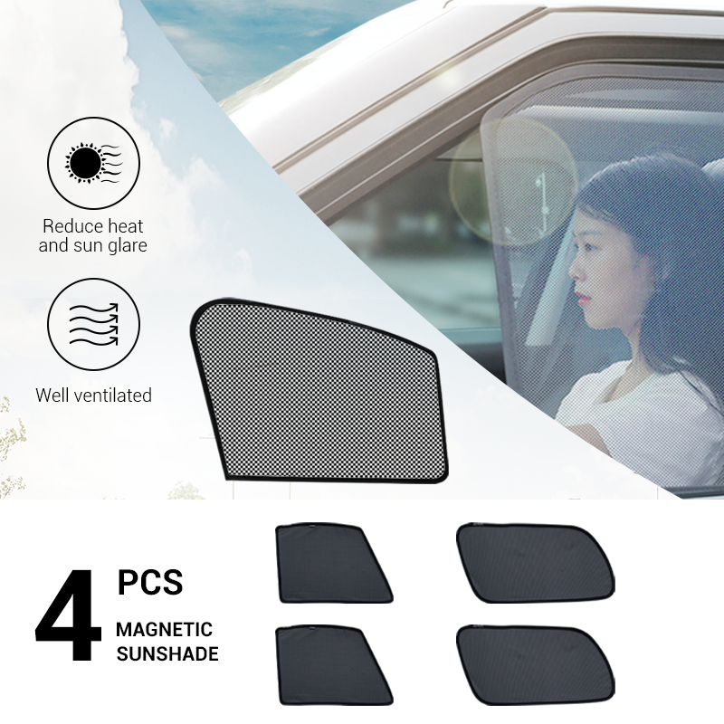 -Whole sunshade is located parallel with window glass without disturbing the window slide up/down. No need to take off when want to close/open window.