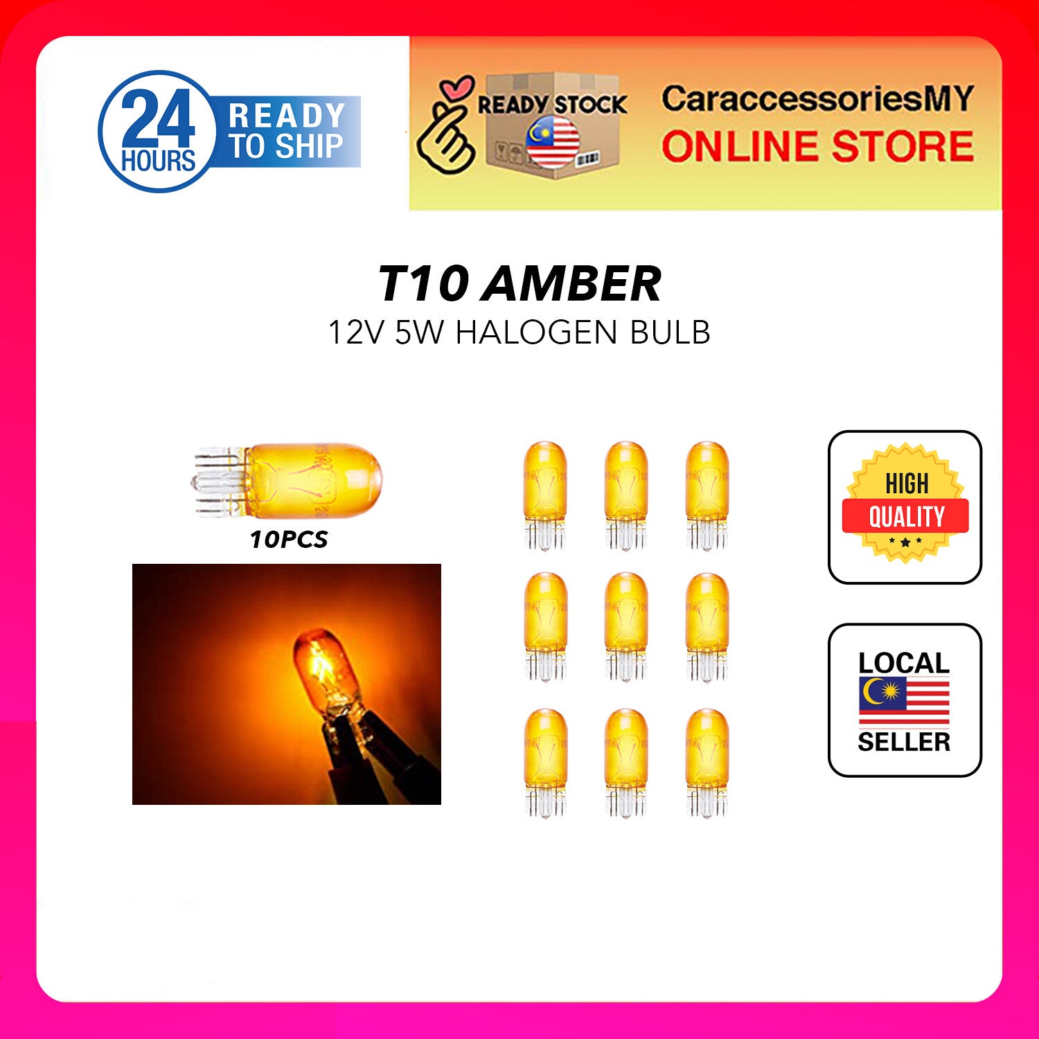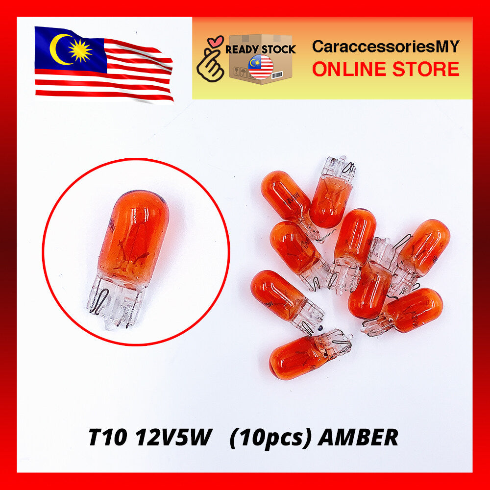 T10 12V 5W 10pcs Halogen light bulb Amber Kancil Waja Wira Viva Aruz Axia Myvi Bezza Saga Blm Flx Fl Persona