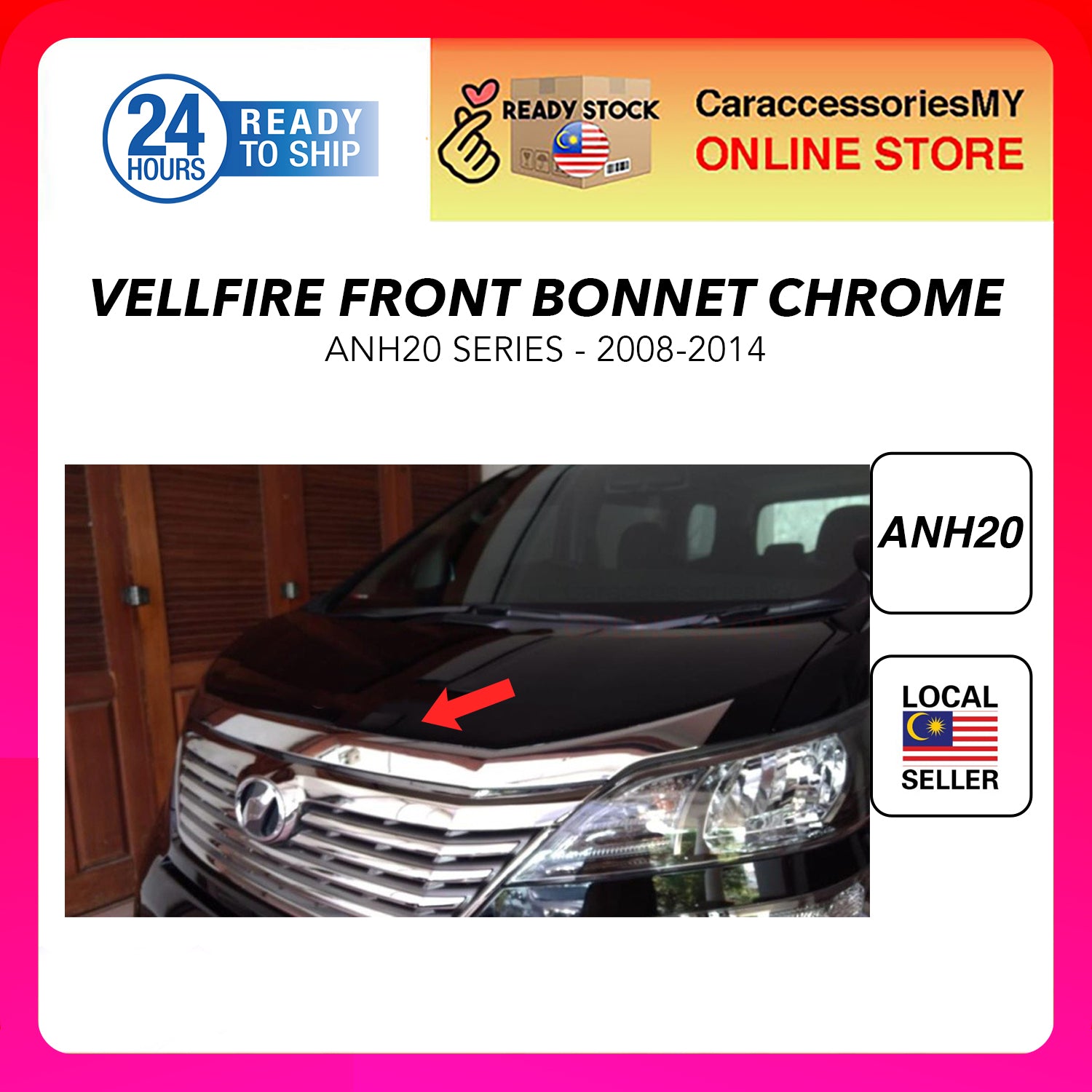 100% Brand new aftermarket parts Easy installation, attachment typeExterior trim parts to enhance beauty and luxuary of your vehiclePlease clean and dry well the car's surface of installation area before attaching the product. (Remove wax, oil, dust etc.)Find exact position to attach the product before starting the installation.We recommend to use extra stickers for better flush fit. Fits to Toyota Vellfire ANH 20 2008-2014